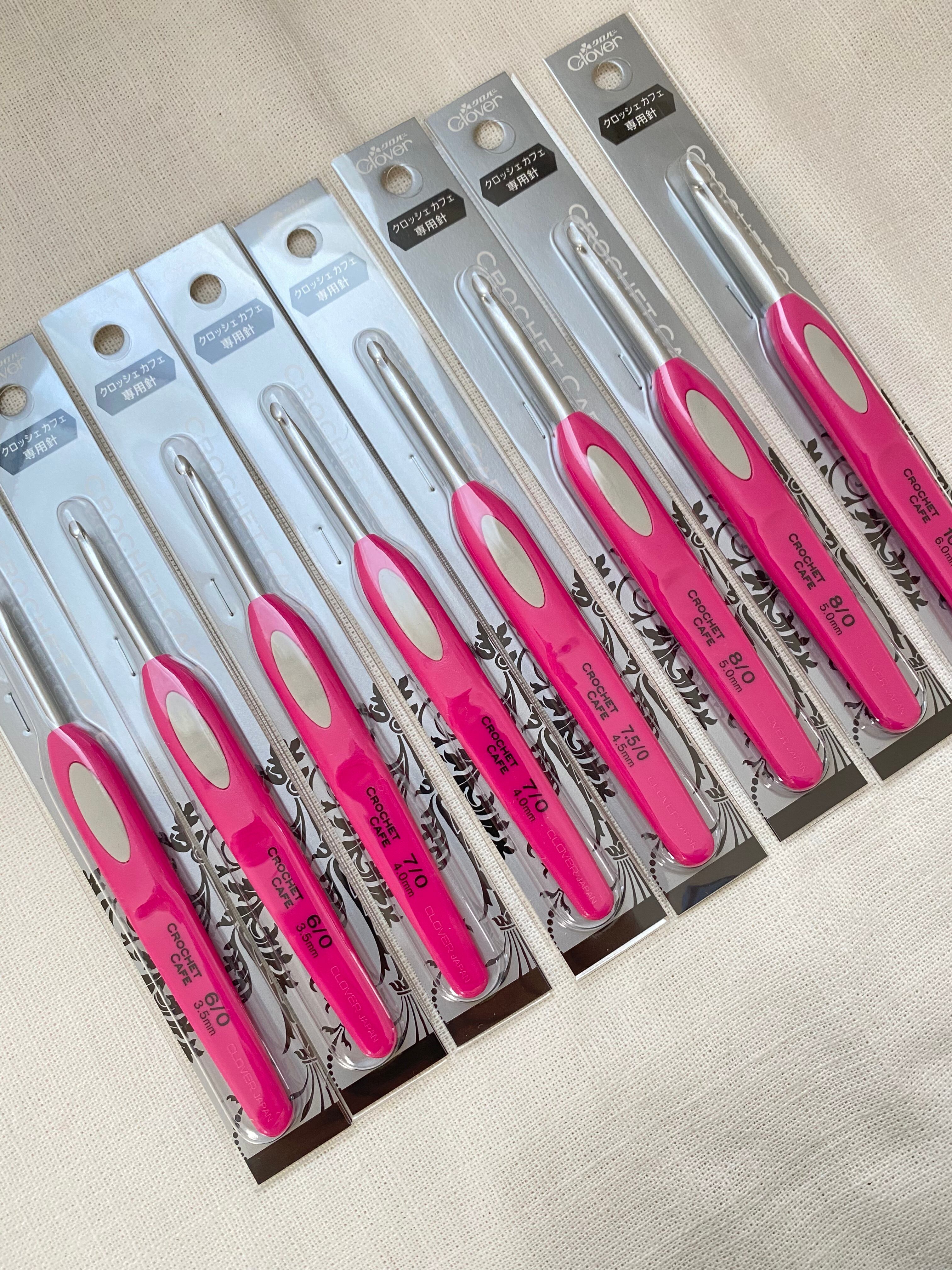 特別販売のピンク色かぎ針です。 6号/7号/7.5号/8号/10号 *クローバー製 *編みやすいラバー付き持ち手